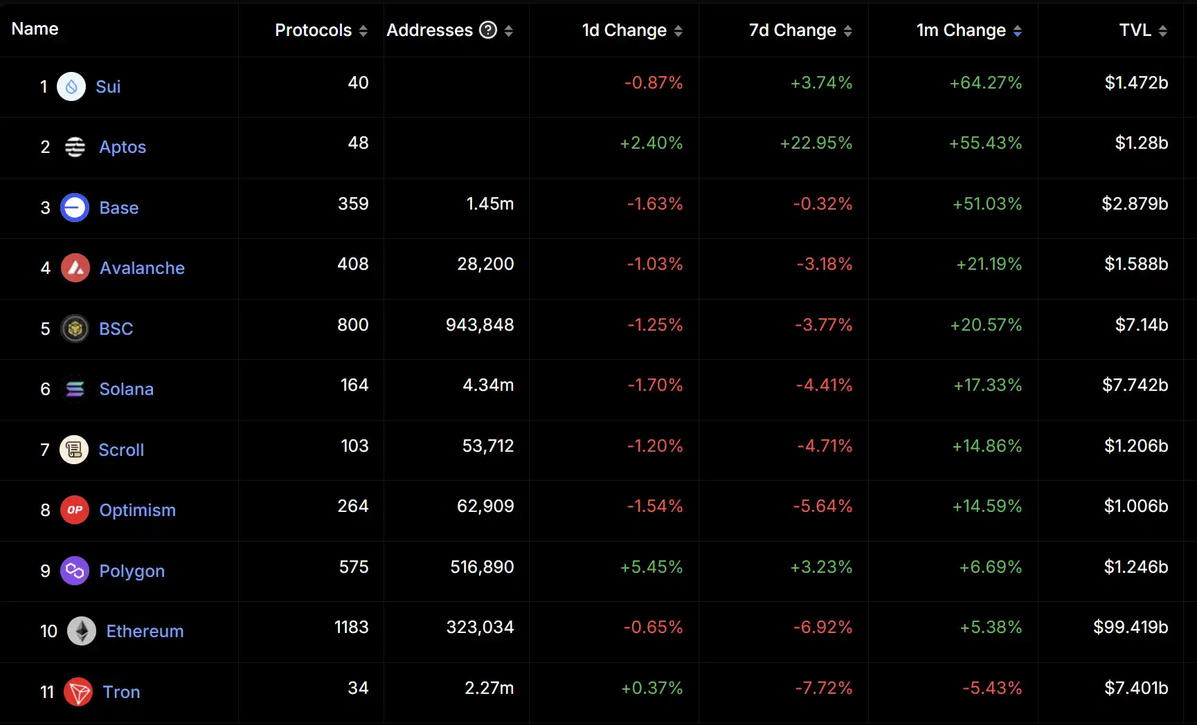 此次 SUI 炒作由机构启动,讲述的是取代 Solana 的叙事。资金注入公链受惠的不只是币价,连带 TVL、生态项目甚至是迷因也跟着上涨。