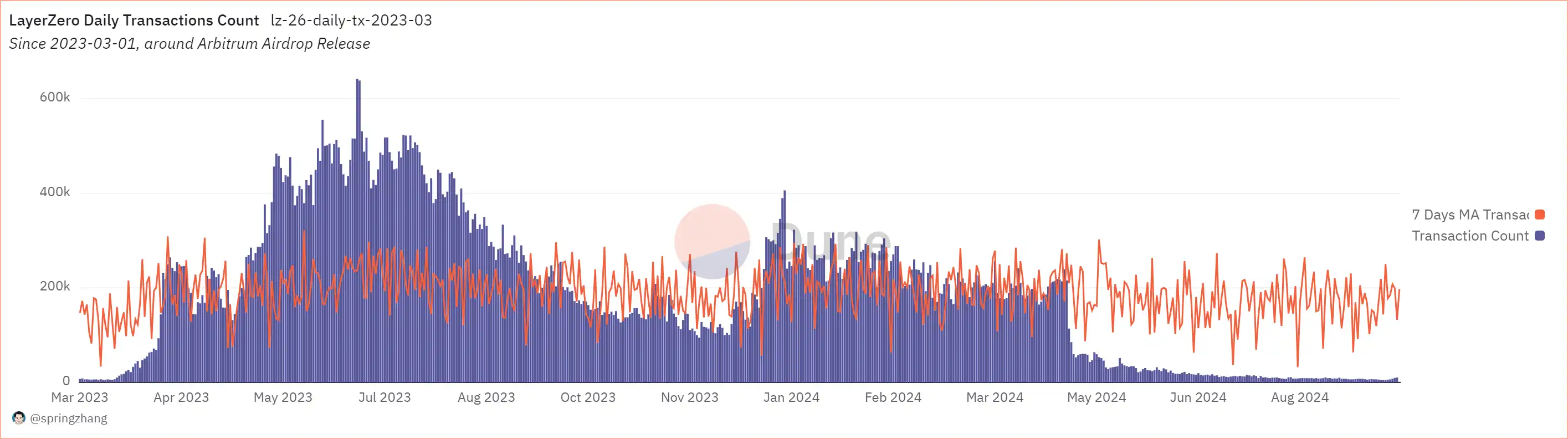 LayerZero 日交易数量统计,数据来源:Dune