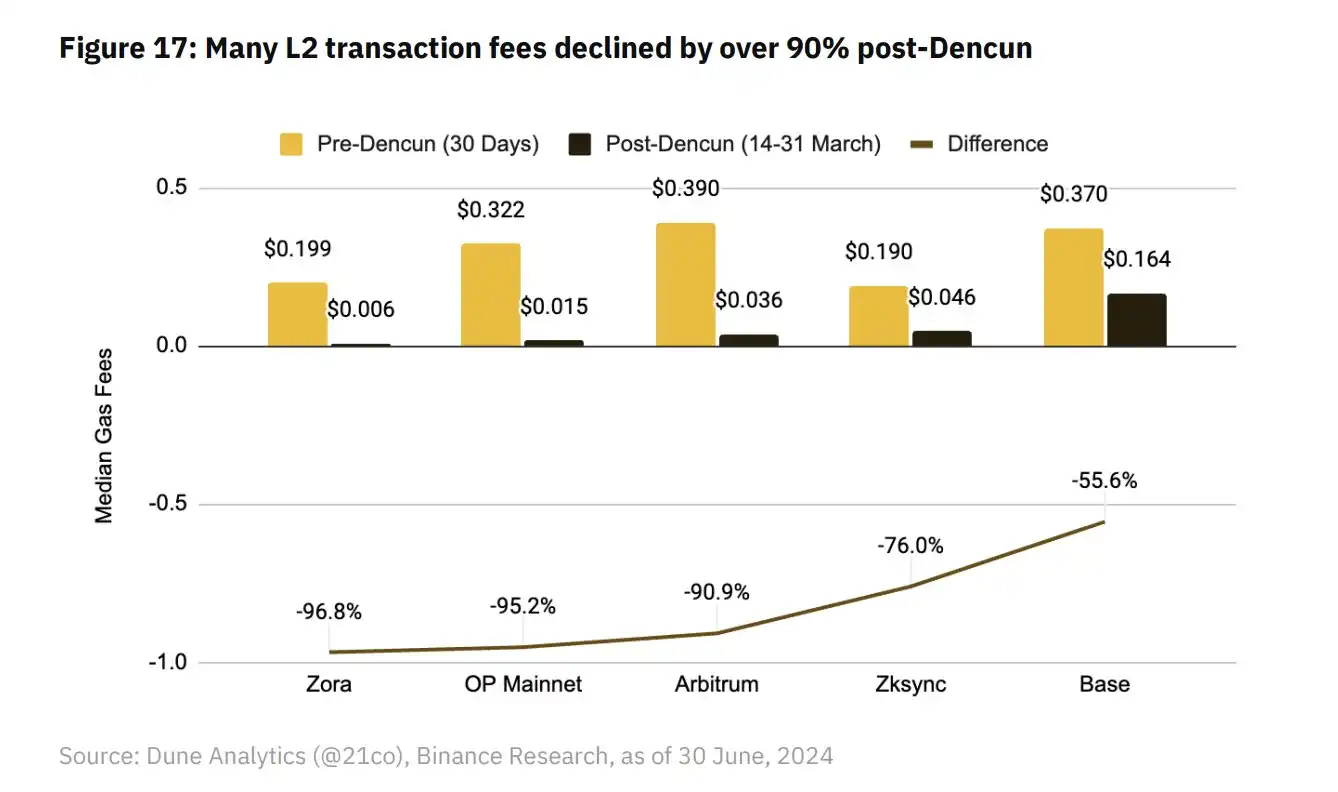 L2 坎昆升级前后交易费用对比,数据来源: hashedem.substack.com