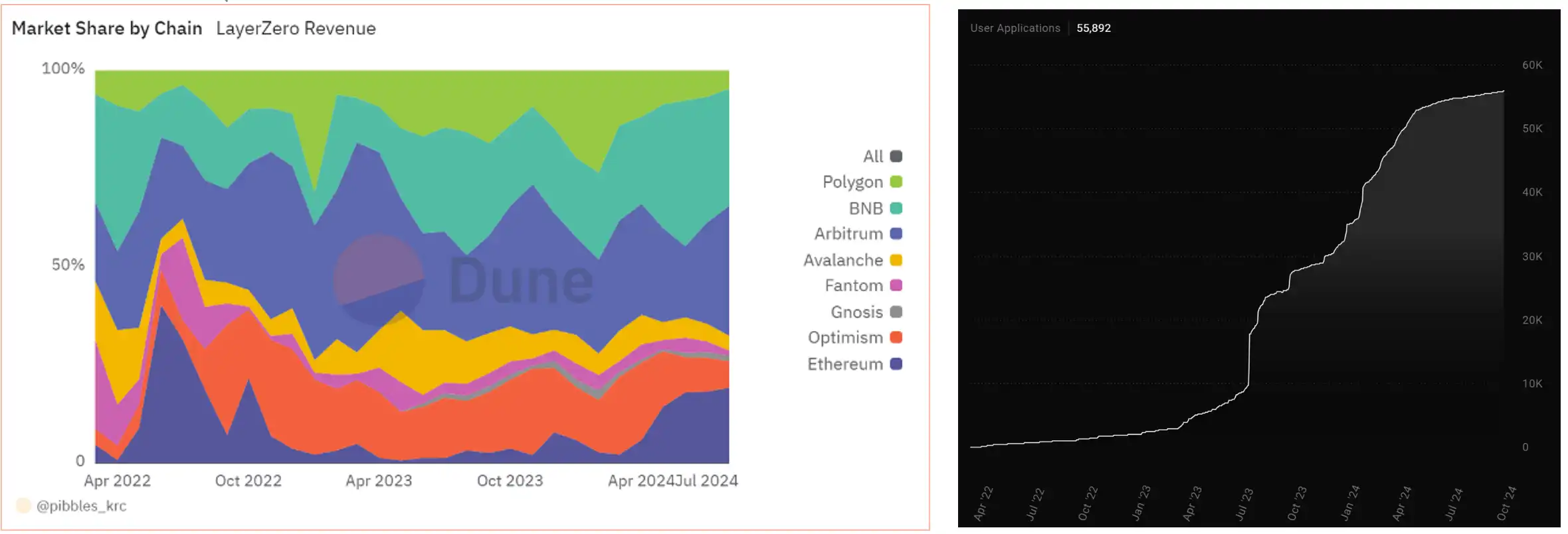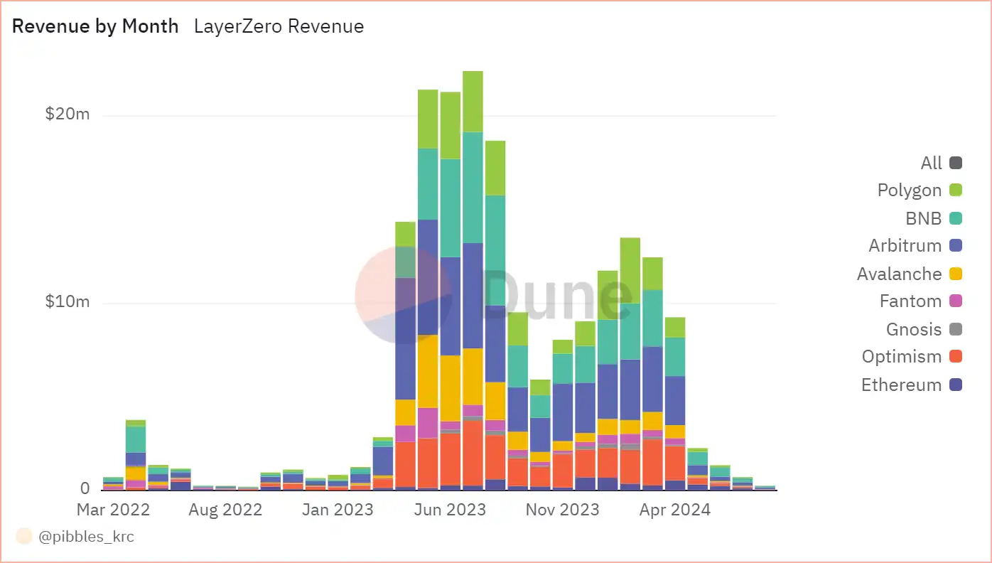 LayerZero 月收入以及占比,数据来源:Dune