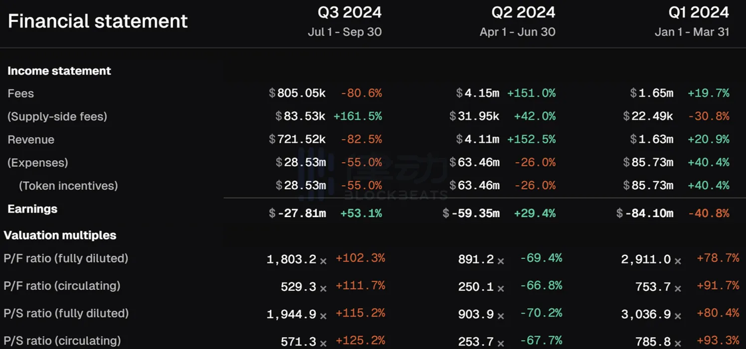 Base 各项财务指标变动情况,数据来源:Tokenterminal