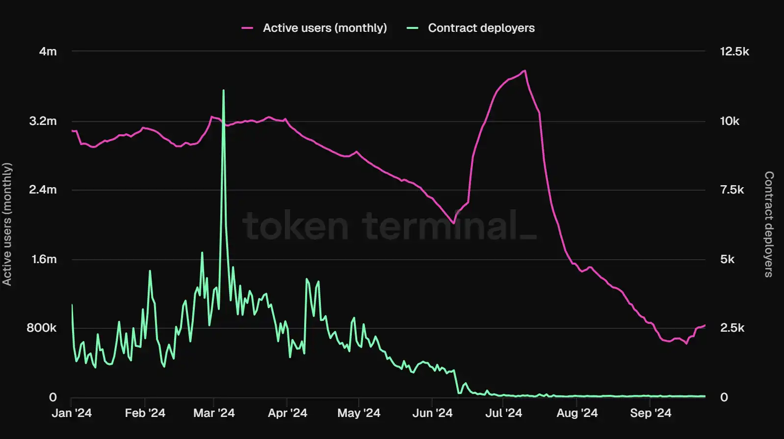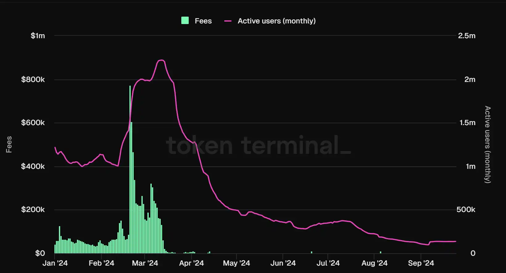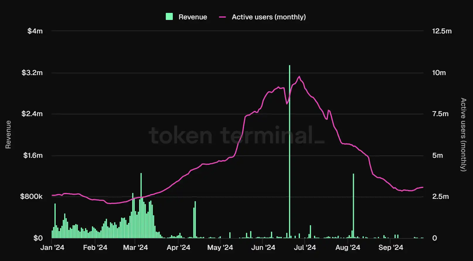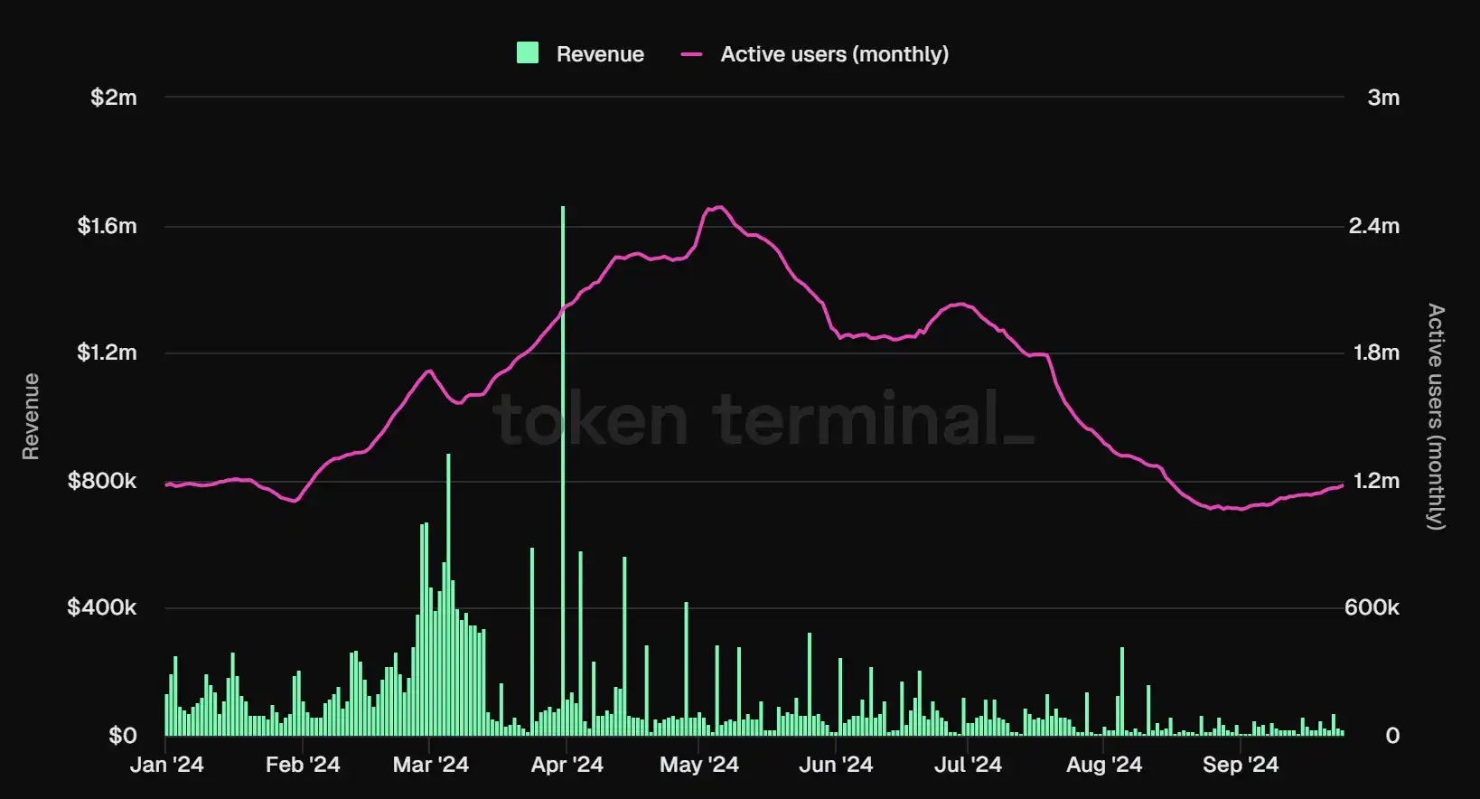 Base 月活用户数据,数据来源:Tokenterminal