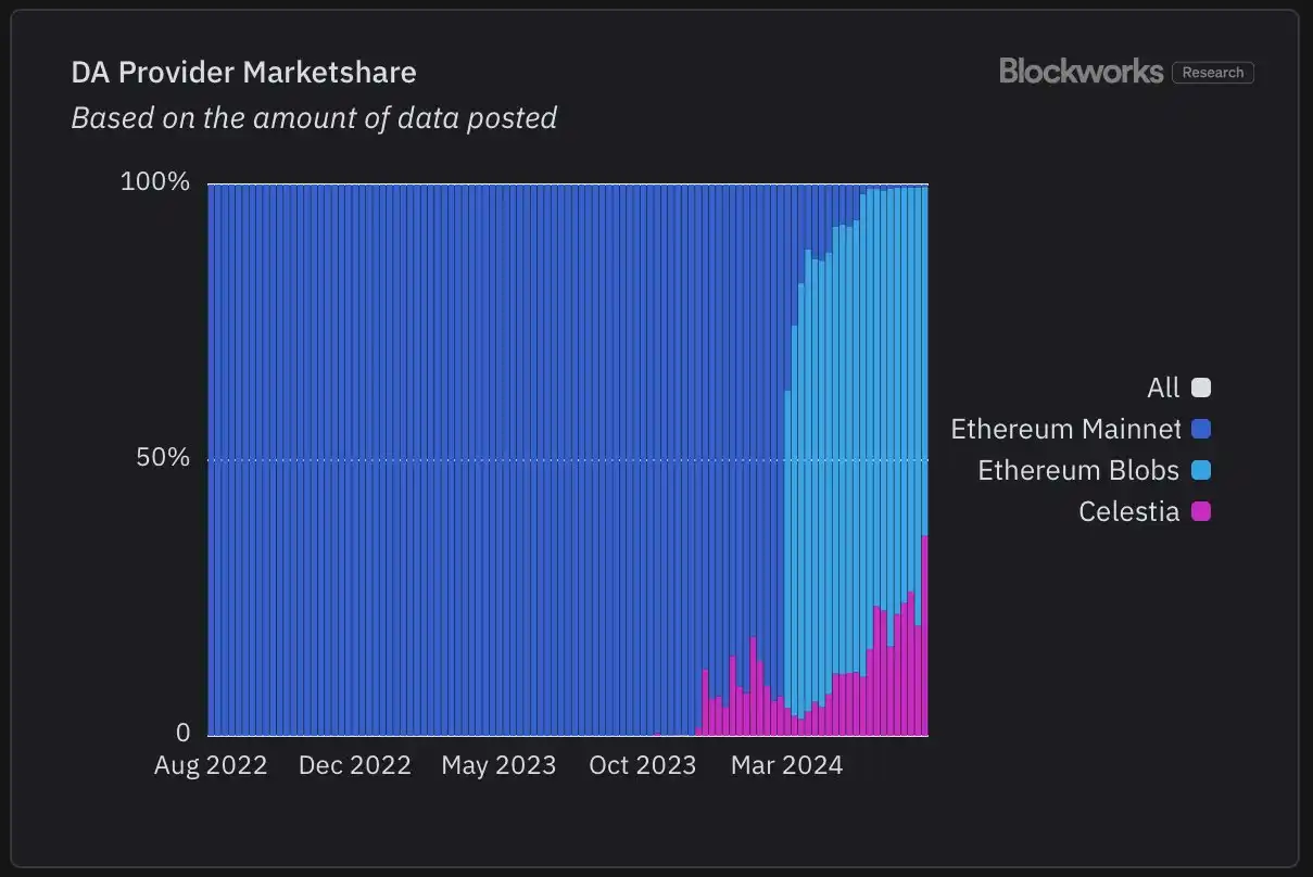 DA 市场份额(按 Data post 统计),数据来源:Blockworks