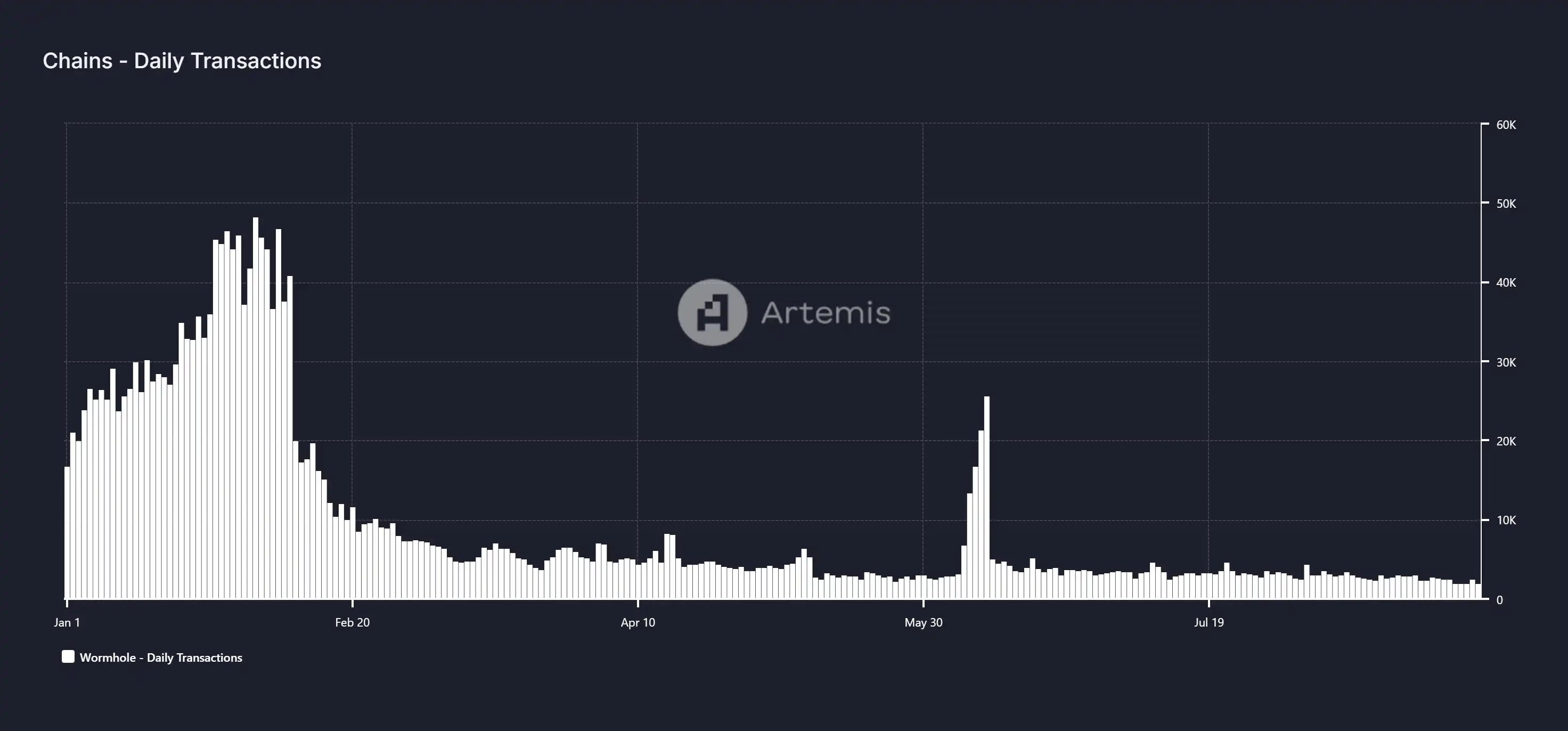 Wormhole 日跨链交易量,数据来源:Artemis