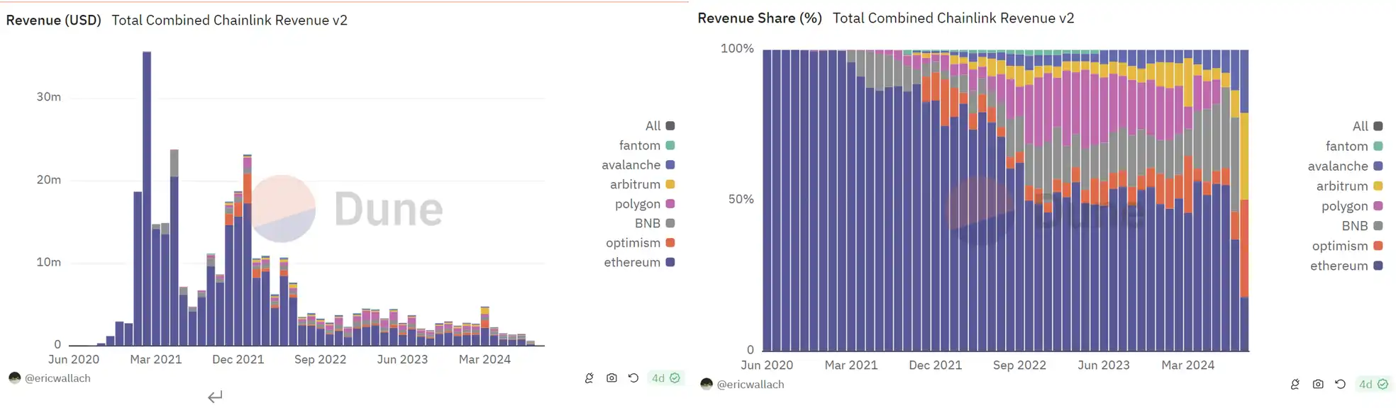 Chainlink 收入来源及占比,数据来源:Dune