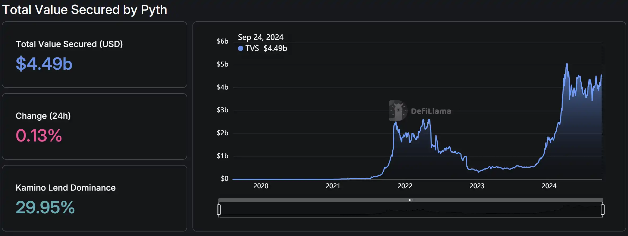 Pyth TVL(TVS) 增长情况,数据来源:DefiLlama