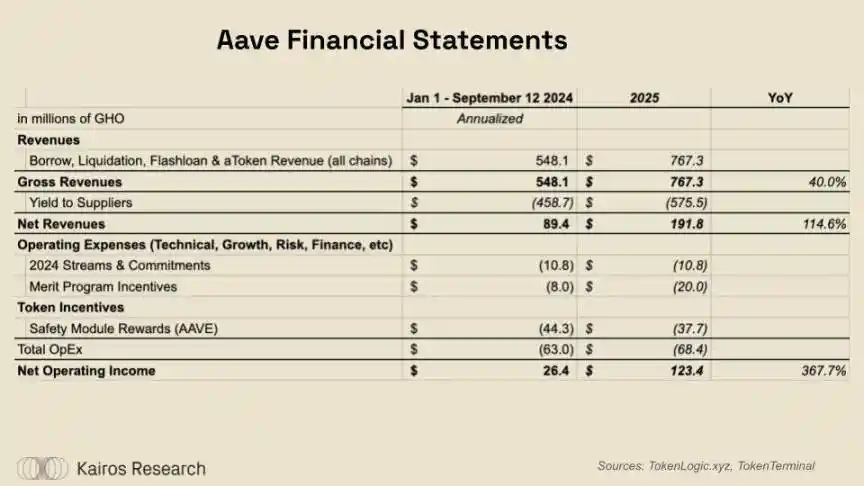 · MakerDAO 的净收入利润率为 57% ,而 Aave 的利润率为 16.31%