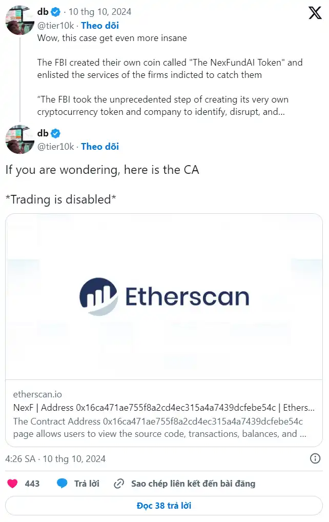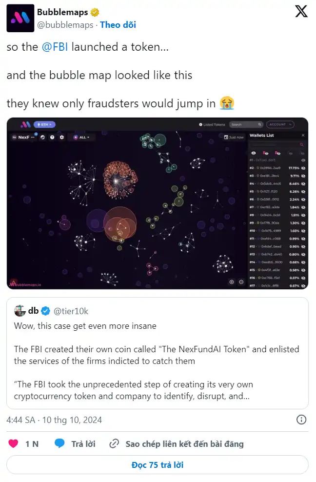 值得注意的是, 为了调查此案, 美国联邦调查局 (FBI) 创造了一种名为"NexFundAI"的代币作为"诱饵", 然后雇佣做市商来建立市场, 最终收集到犯罪证据。