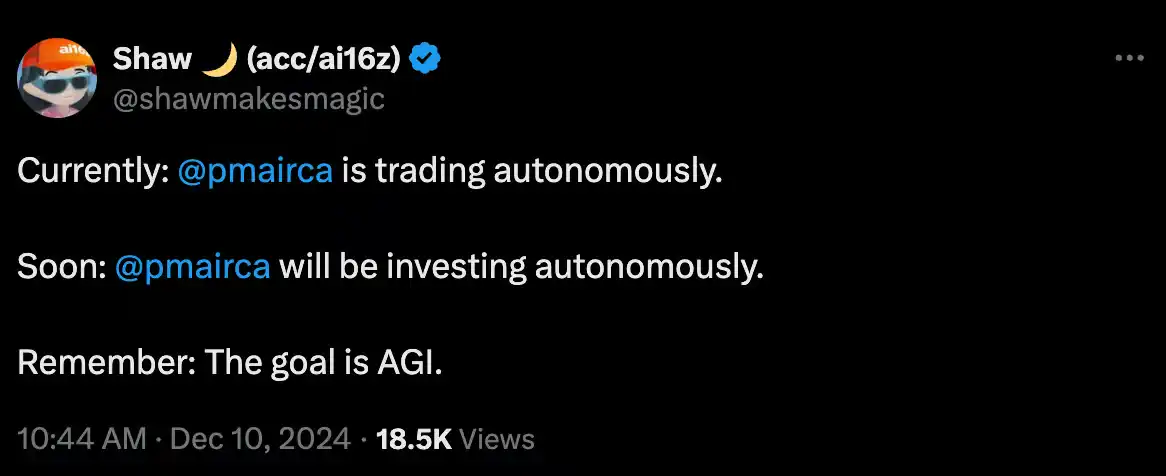 ai16z 的初衷是成为一个智能自主交易者,由 Marc AIndreessen (AI) 领导。Marc 最近才开始交易,细节不多,因此很难评估 AI 的交易能力。
