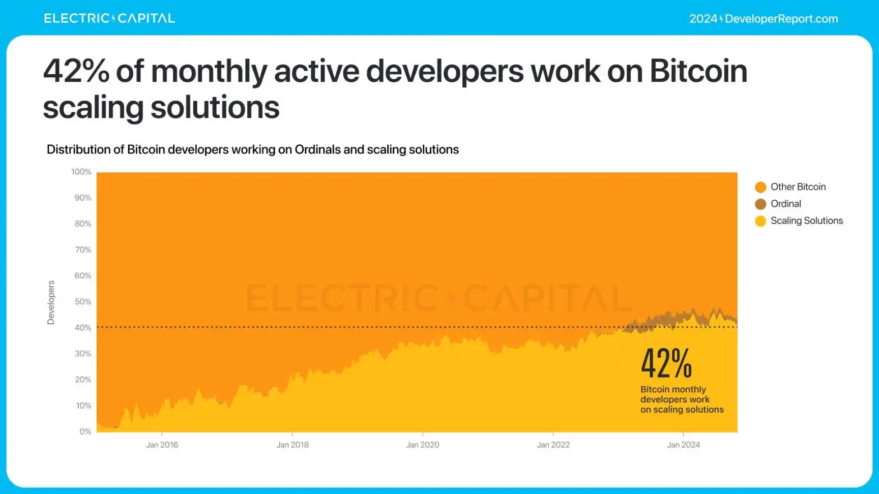 42% 的比特币开发者——几乎一半——正在从事比特币扩容解决方案的工作。