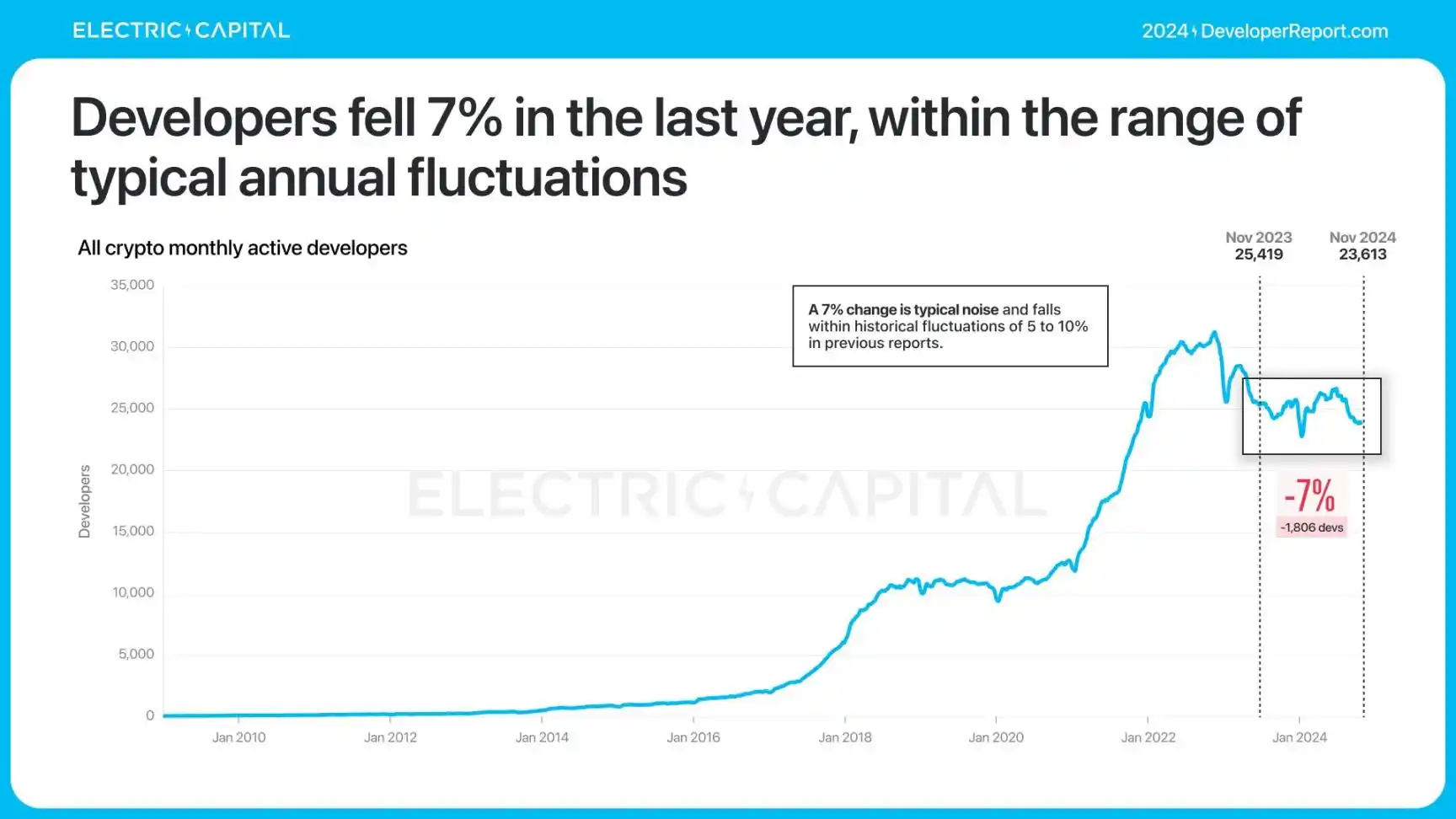 我们低估了加密领域的开发者数量,因为我们的统计仅关注开源开发活动。