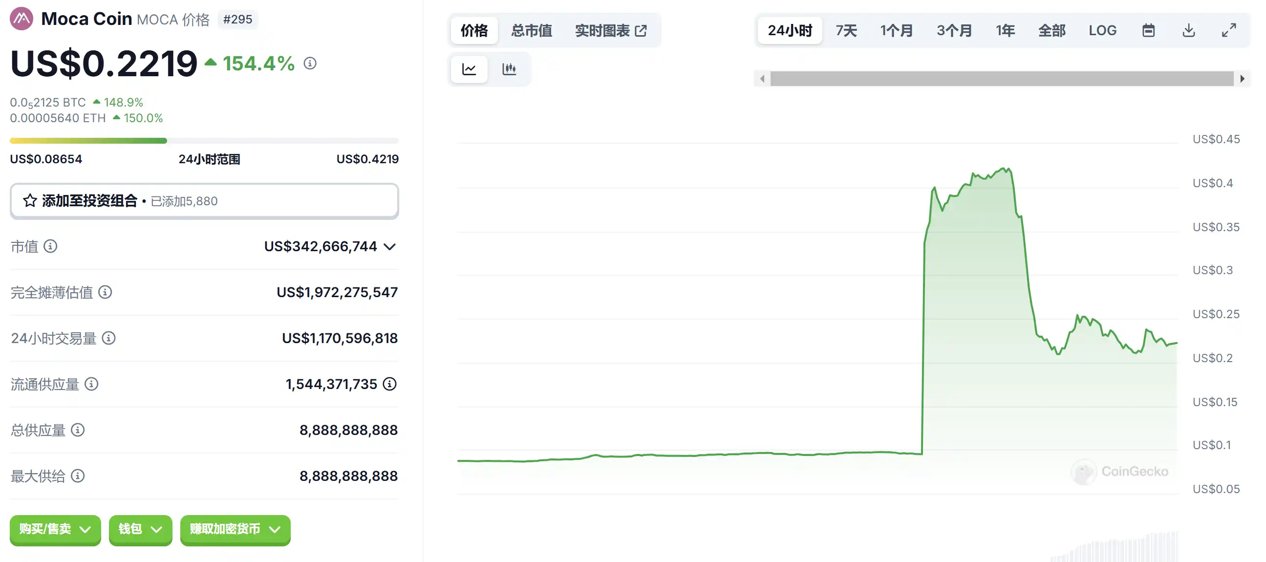 涨幅 + 41 个基点。MOCA 今日备受瞩目,因其即将在韩国领先的数字资产交易所 Upbit 上市。此次上市有望将 MOCA 的影响力扩展到韩国超过 2800 万已完成 KYC(了解你的客户)的用户,韩国是 Moca Network 的关键市场。这一消息导致 MOCA 价格大幅上涨,据报道涨幅达 3 至 4 倍。此次上市是 Moca 构建跨链数字身份基础设施这一更广泛战略的一部分。此外,MOCA 在 NFT 领域的参与以及与 Animoca Brands 等主要参与者的合作进一步激发了人们的兴趣。