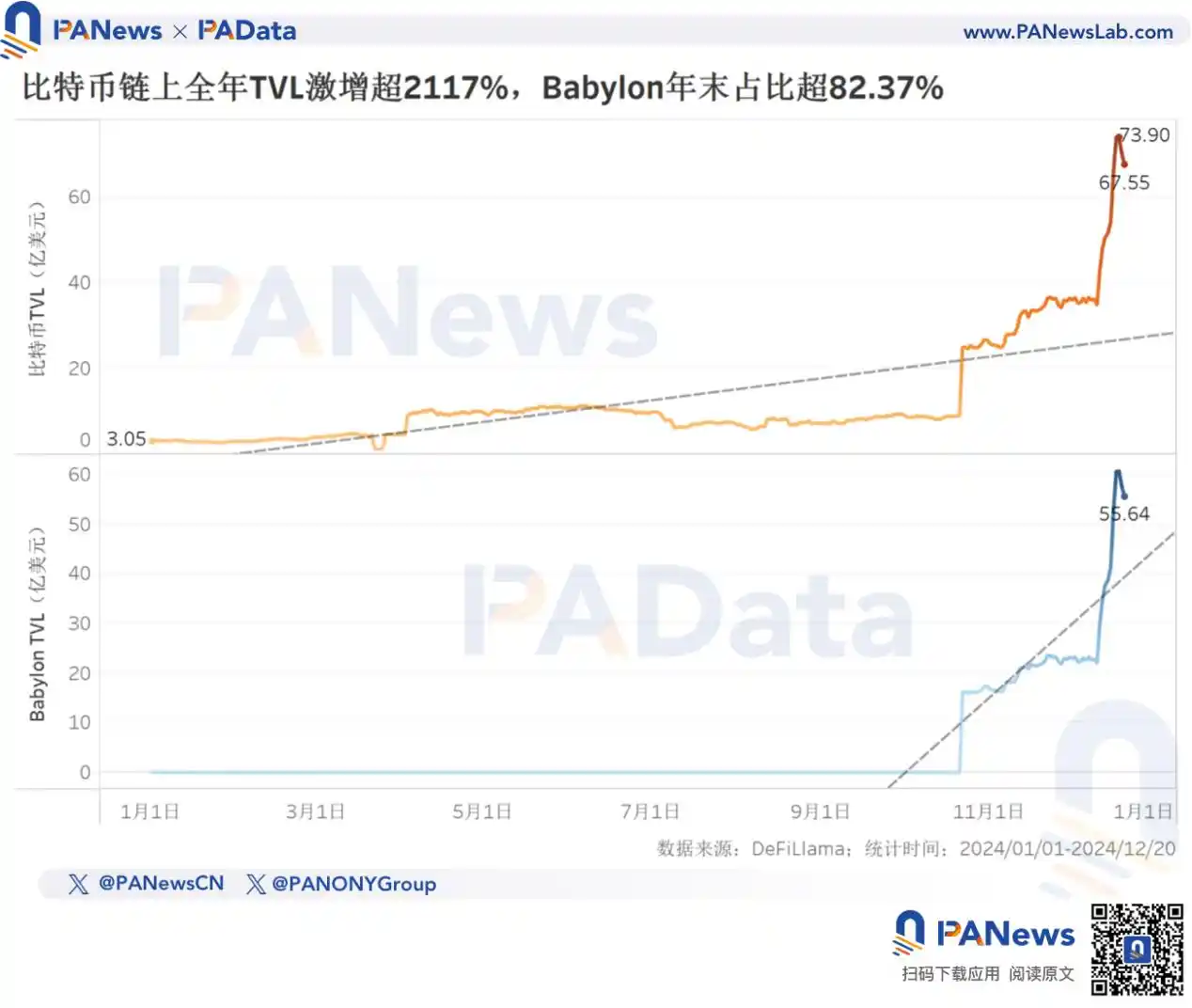 · 年末比特币的 TVL 约为 67.55 亿美元,全年涨幅高达 2117.11%,其中 Babylon 的 TVL 占比 82.37%。