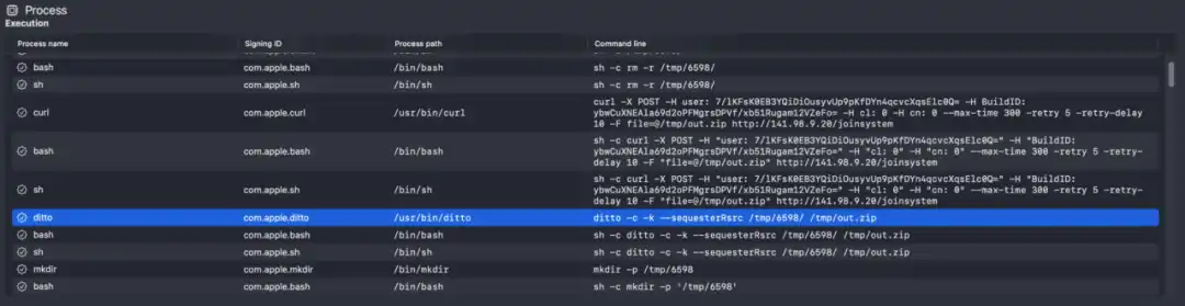 通过对数据解密后发现该二进制文件最终同样执行恶意的 osascript 脚本(完整解密代码已分享到:https://pastebin.com/qRYQ44xa),该脚本会收集用户设备上的信息并发送到后台。