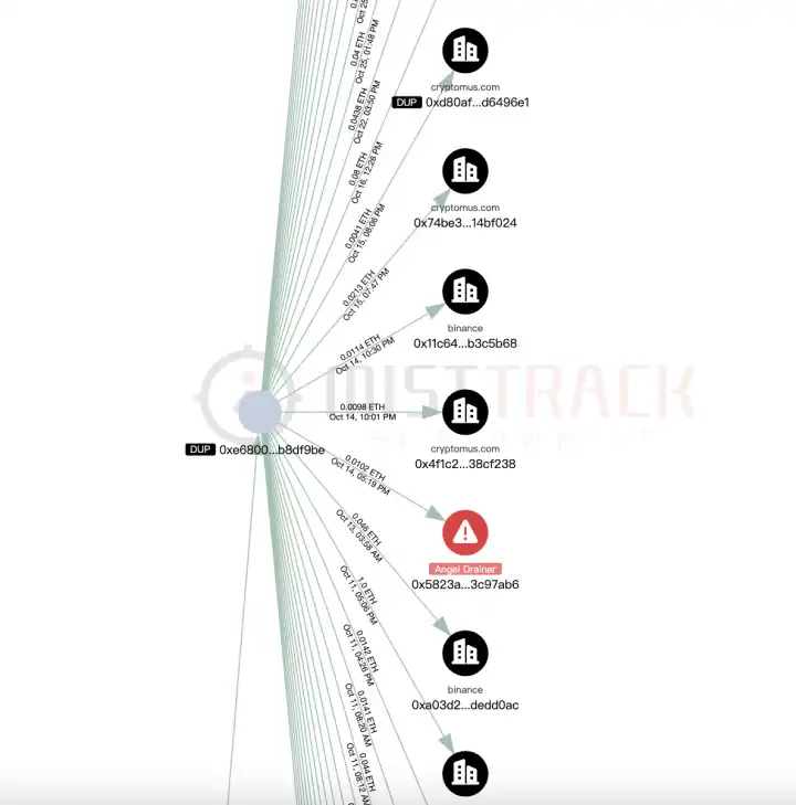 新地址(0xdfe7)主要的 ETH 转出路径如下: