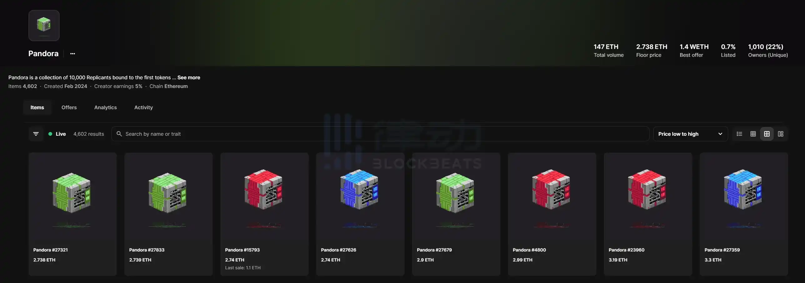 「图币一体」概念在 2 月初大放异彩,ERC-404 的第一个项目「潘多拉魔盒」是 2 月初毫无疑问的绝对明星,曾暴涨近 30 倍。