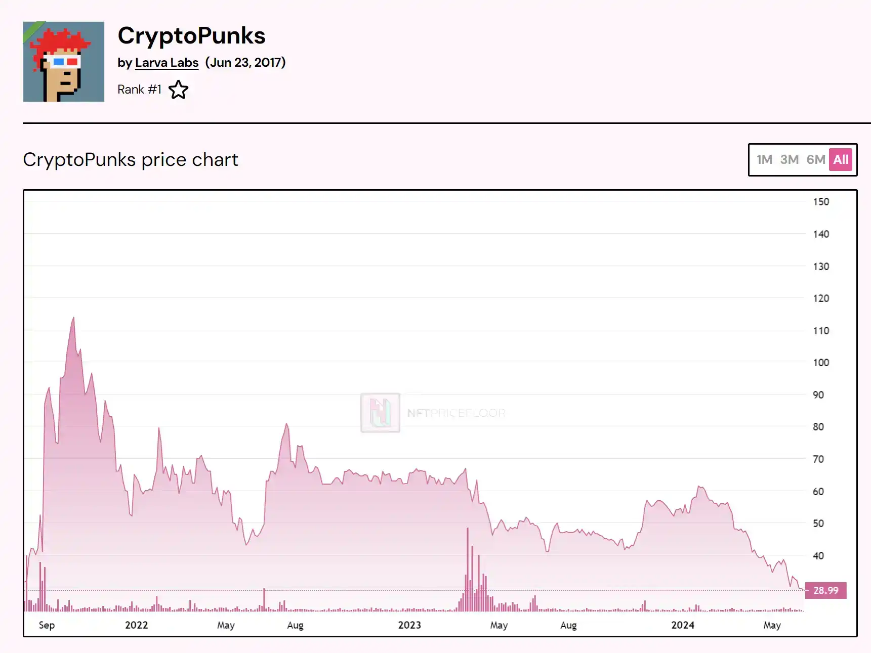 在这个月,我们见到了 30 ETH 以下的 CryptoPunks。这是自 2021 年 8 月以来,CryptoPunks 的地板价首次跌破 30 ETH。