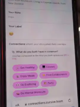 Cursive 是一款使用全同态加密技术(FHE)的应用程序,它允许用户识别与其他用户共同感兴趣的领域,同时保护隐私。清迈的 Edge City(Zuzalu 的众多分社之一)就使用了这款应用。