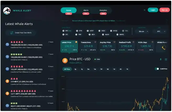 Whale Alerts 是指跟踪和报告大额加密交易的服务。这些服务随着加密生态系统的发展而出现,这也反映了市场参与者对区块链透明性特点的高度认可。
