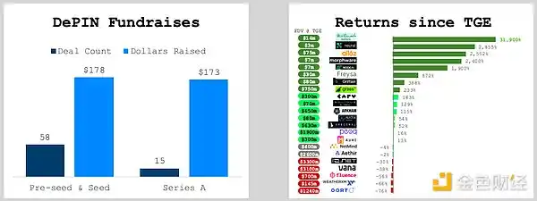 · DePIN 部门在前种子轮、种子轮和 A 轮融资中筹集了超过 3.5 亿美元。