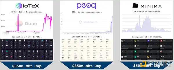 最成熟的 DePIN Layer 1 生态系统 IoTeX 在 2024 年第四季度的链上交易活动增长了 10 倍以上,同时两个新兴的挑战者 Peaq 和 Minima 推出了主网代币。
