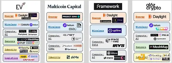 Multicoin、Framework、a16z Crypto 和 EV3 是对 DePIN 项目最有信心的支持者之一,它们在 2024 年各进行了 8 次以上的投资,其 DePIN 投资组合各自筹集了超过 1 亿美元。