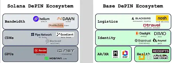 DePIN 的「公链战争」加速,Solana 和 Base 从其他 Layer 1 区块链中夺取了市场份额。