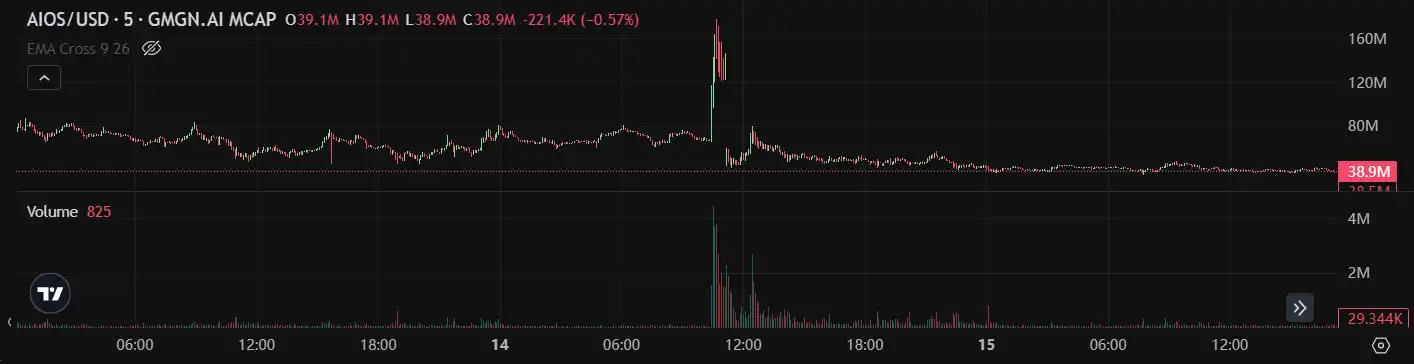 受该消息推动,AIOS 短时暴涨超 150%,市值高达 1.7 亿美元。目前市值在 40M 左右。