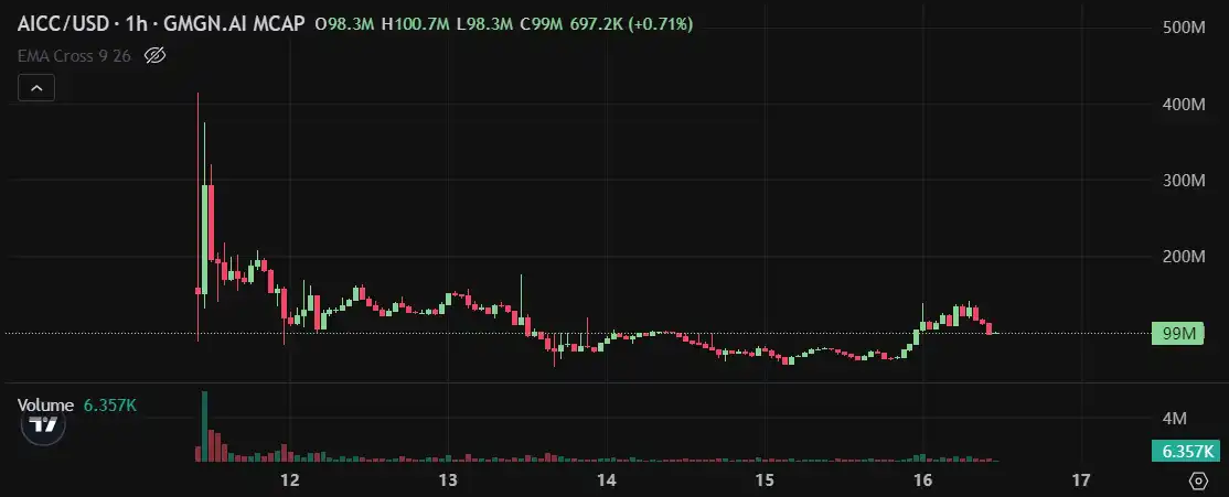 AICC 在链上正式开盘后,市值高达突破 4 亿美元,价格回落后又于一小时内再次突破 3.7 亿美元,成为又一「AI 板块速通盘」。不过,AiccelerateDAO 的参与者存在在项目启动后获利颇丰迅速抛售代币的行为,迅速将市场的注意力聚焦于代币分配结构这一关键问题,在社区引发巨大的讨论与争议,AICC 及其项目方、投资方也陷入舆论职责的漩涡。受此影响,AICC 代币价格一路下跌,市值最低跌至 5000 万美元左右,相较此前 3.7 亿美元的市值高点已跌去近 80%。