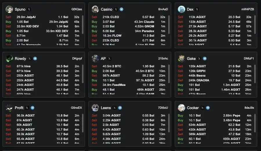而在大家后知后觉时,与之形成对比的是在该代币发射的半小时分钟内,链上数据显示大量的聪明钱快速购入 AGIXT,并且不乏单笔交易超过 50 SOL 以上的鲸鱼。
