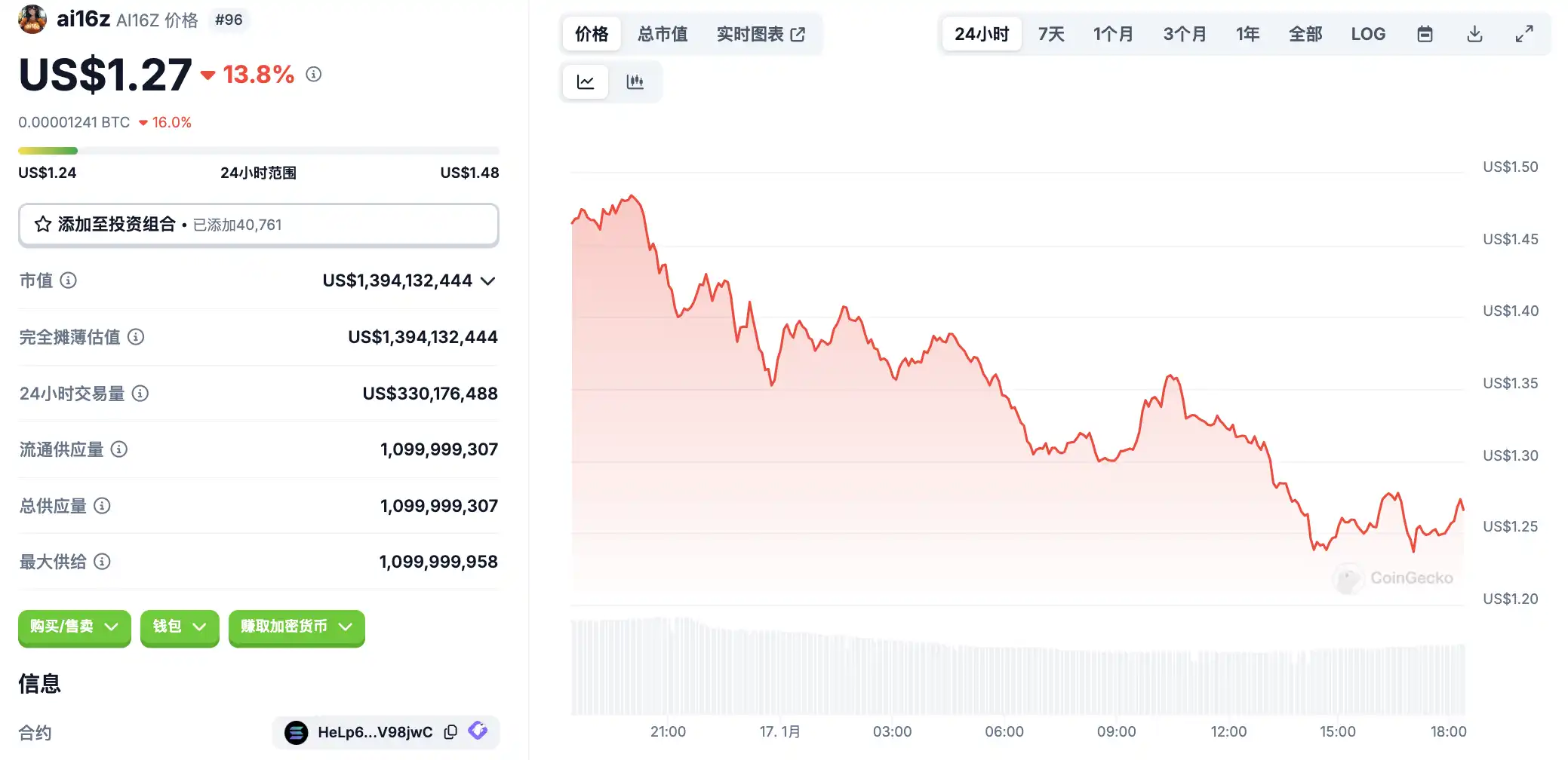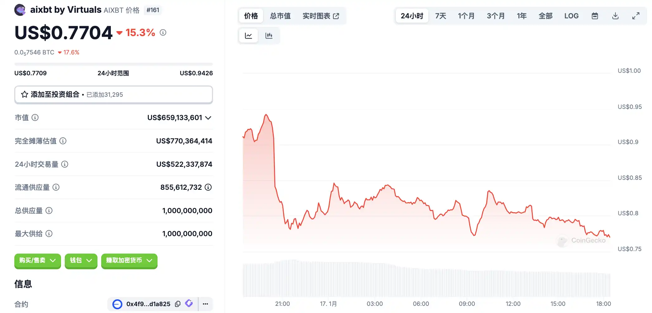 1.AI 概念币实时 mindshare 榜:AIXBT、VIRTUAL、FARTCOIN 位居前三