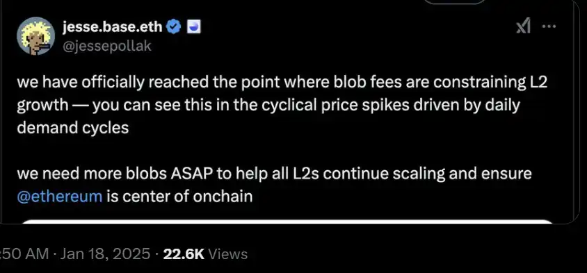 编者按:本文讨论了以太坊 L2 面临的 Blob 空间不足问题,随着 L2 链的增长,多个 L2 竞争有限的 Blob 存储,导致费用飙升,用户成本增加。即使通过 Pectra 升级将 Blob 数增至 6 个,问题也只能暂时缓解,无法根本解决。解决方案包括短期的 Pectra 升级、中期的 PeerDAS 实现和长期的 DA 扩展,但这些方案能否及时到位仍不确定。
