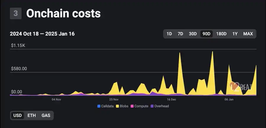 每日数据清楚地说明了一个问题,Blob 费用峰值: