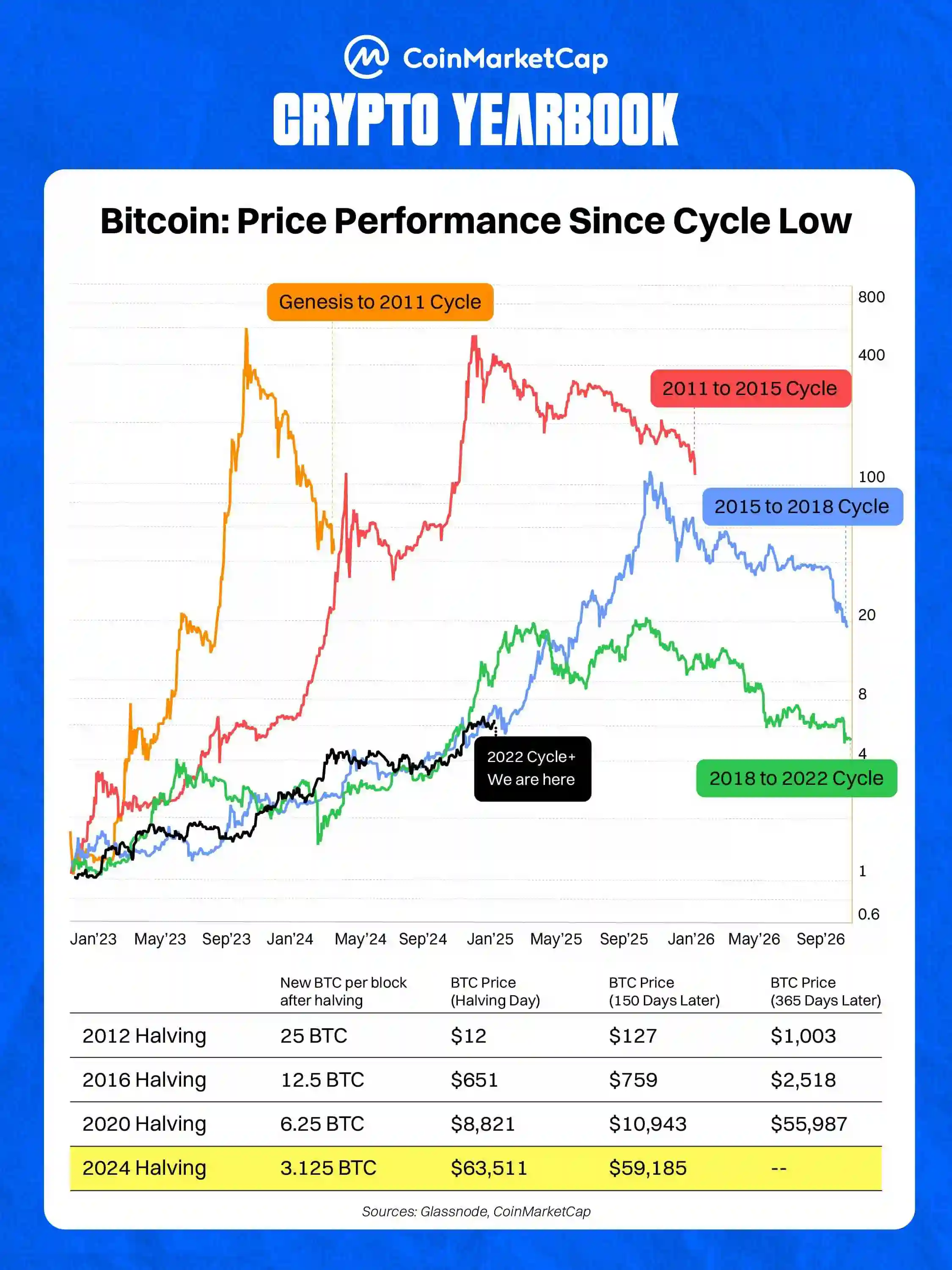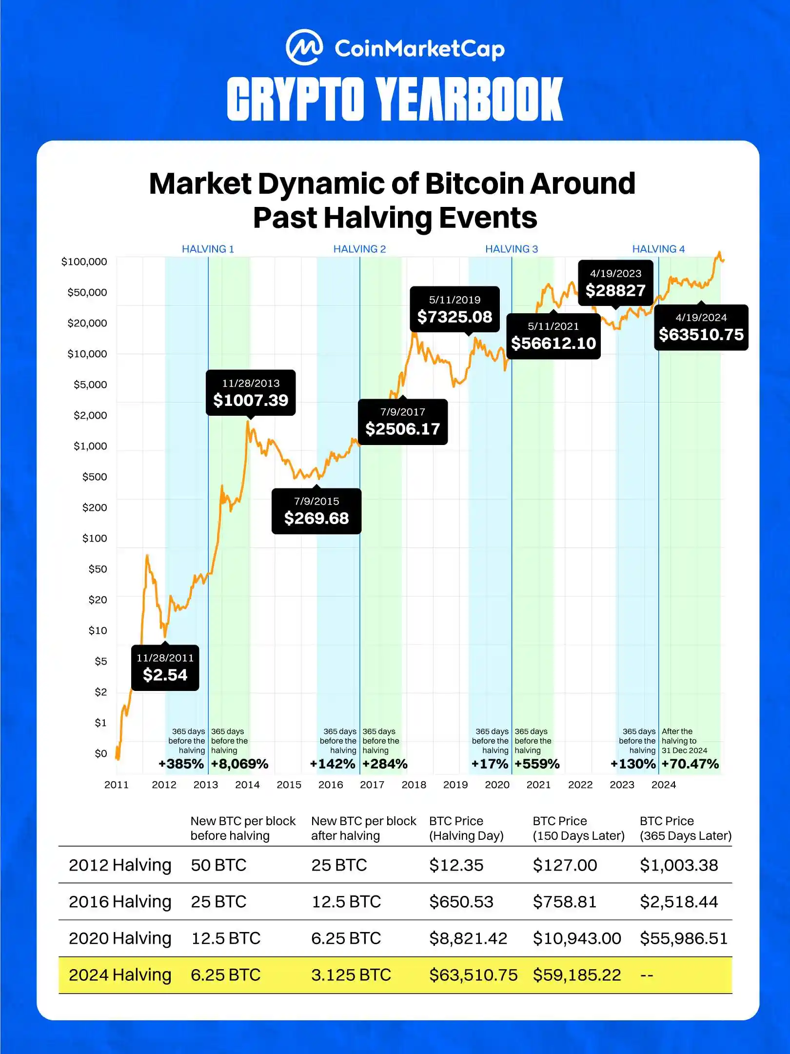 24 年比特币减半,时价 63,000 左右;现在的事大家也共同见证了,从一场实验到 10W 美金,贯穿属于 BTC 不断狂奔的 16 个年头。