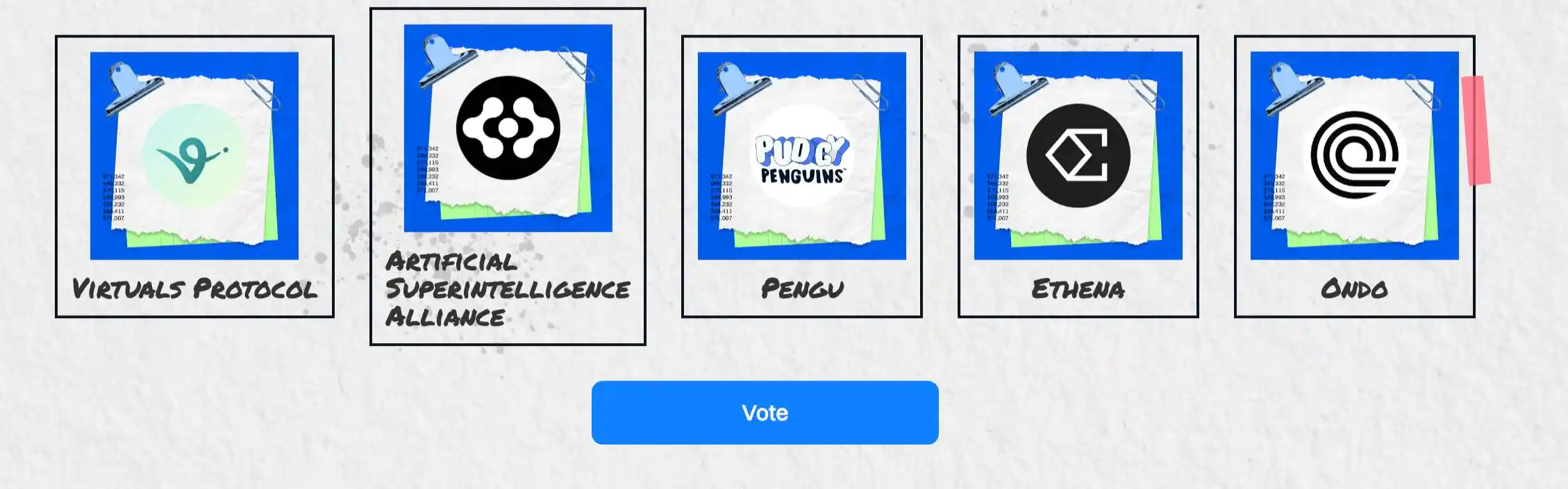 备选名单:Virtuals,FET,Pengu,Ethena,Ondo。
