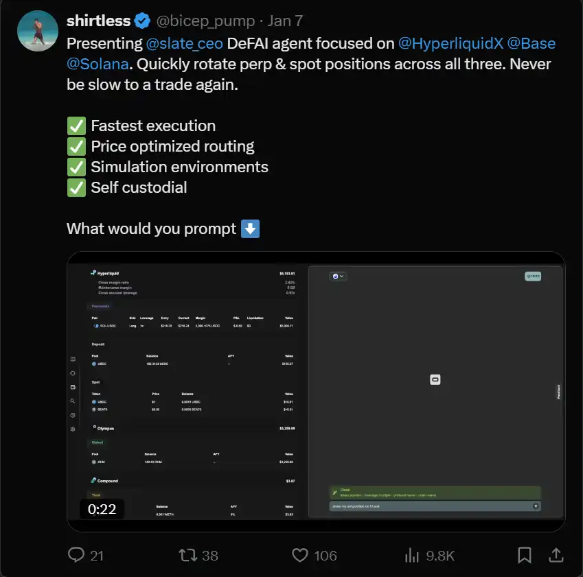 简介:DeFi 抽象层——通过对话语言(通过 Telegram 机器人)进行 DeFi 操作,结合 AI 驱动的市场见解。
