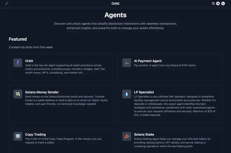 专业代理:由 Griffain 创建,具备特定的实用功能,例如代币狙击。