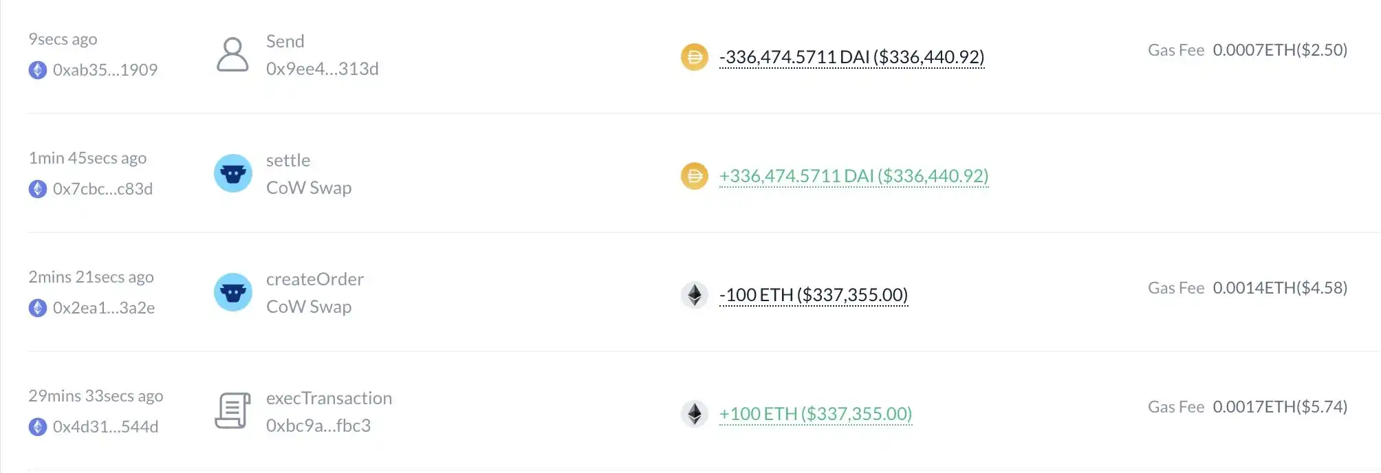 下午 6: 20 左右,EF 用于小额高频出售 ETH 的地址 0xd77...1f4 再次出售了 100 枚 ETH,卖出均价 3364 美元。