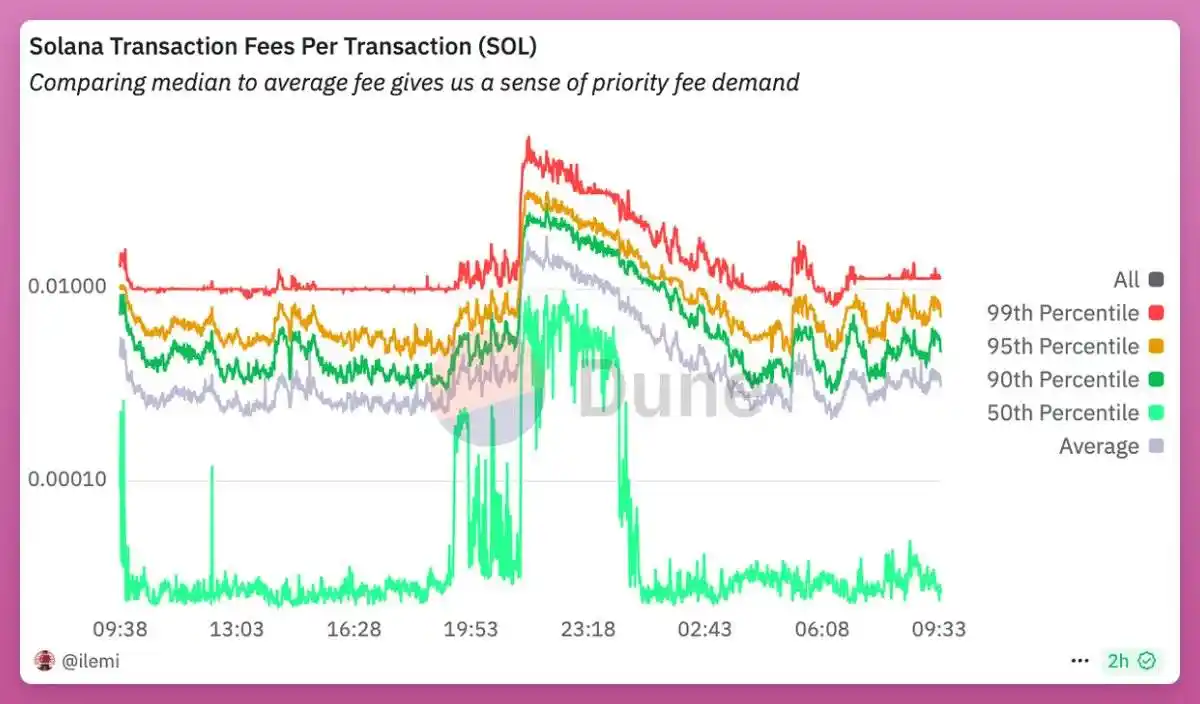 尽管表现强劲,但 Solana 的手续费在此期间平均飙升了 20 倍,许多用户无法成功完成交易。