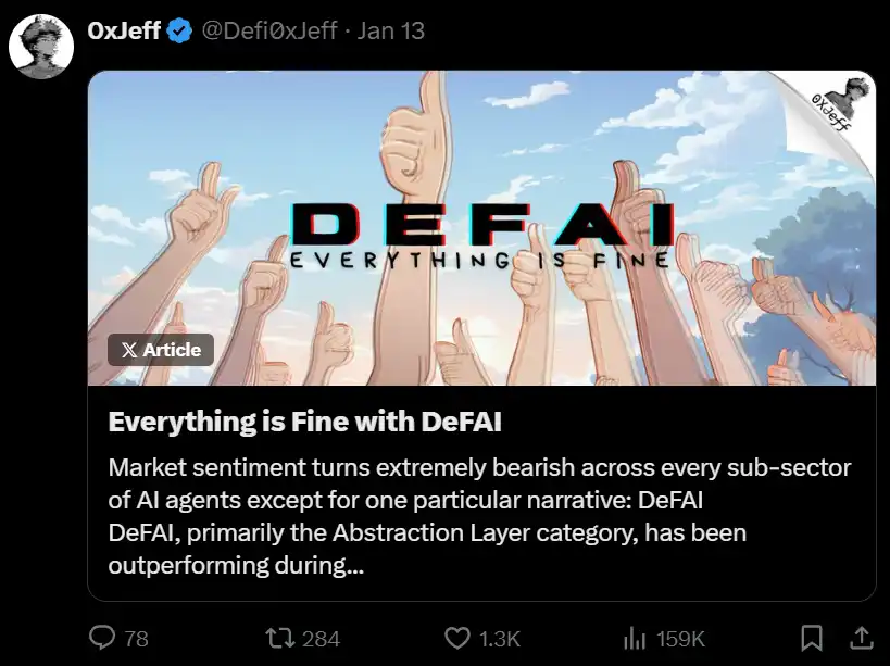 对于那些还不了解 DeFAI 抽象层(另一个关键的 DeFAI 垂直领域)的人,欢迎查看下面的内容: