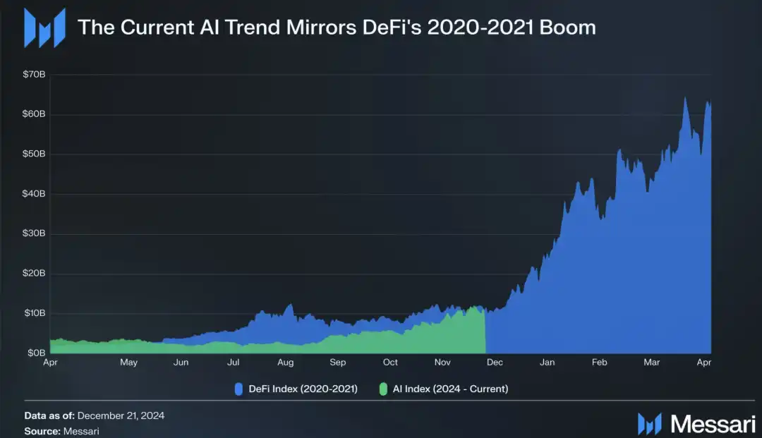 2025 年,AI Agent 板块有望迎来爆发式增长,其火热程度或许能超越 2020 年的 DeFi 夏天。与当年 DeFi 浪潮类似,AI Agent 的发展也经历了从初步探索到快速崛起的过程。在第一阶段,AI Agent 凭借其在自动化交易、智能分析等领域的创新应用,吸引了大量关注和资金投入。然而,随着市场的快速升温,板块也经历了洗盘过程,部分项目因技术或市场因素出现回调。不过,AI Agent 的长期发展依然被广泛看好。2025 年,OpenAI 推出了新一代推理模型 o3,其强大的推理能力和接近通用人工智能(AGI)的表现,为 AI Agent 的发展注入了新的动力。o3 模型在数学、编程等任务中表现出色,能够通过「私人思维链」进行推理,进一步提升了 AI Agent 的智能化水平。此外,AI Agent 的应用场景不断拓展,从 DeFi 到 DAO 治理,其在优化交易决策、提升用户体验和增强治理效率等方面展现出巨大潜力。