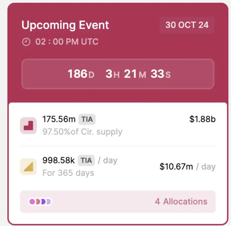 这是关于 TIA 不同轮次和投资者解锁的概览: