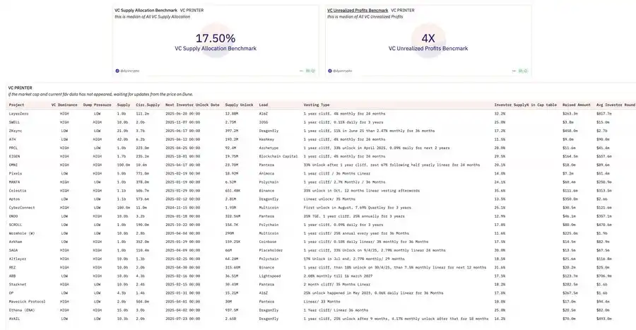 与此同时,所有早期有机会布局的内幕人士也有机会抛售他们的筹码。或许零售投资者最终遭遇的情况甚至比他们在 VC 币种时经历的更糟。