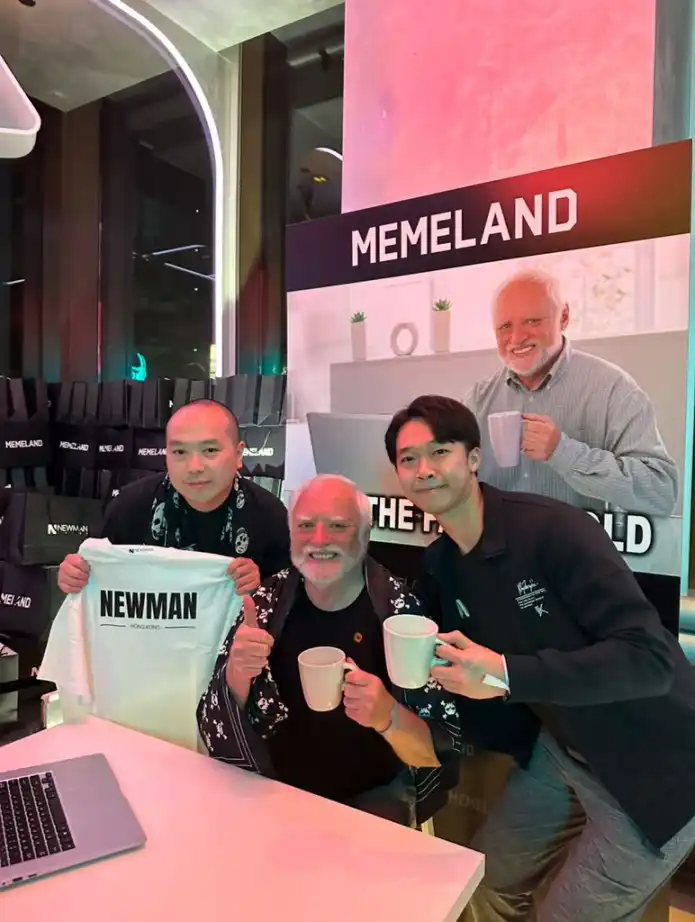 PAIN 的灵感源自经典网络迷因「Hide the Pain Harold」,其原型是匈牙利摄影师 András Arató。2000 年代初期,他在一则摄影器材广告中展露的「笑容背后藏痛苦」表情,因强烈的反差感成为互联网文化符号。此后十余年,Harold 的形象被广泛用于表达生活中的无奈与强撑,甚至 Arató 本人也以幽默态度接纳身份,成为「活着的迷因」。