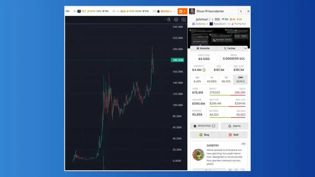在短短 3 小时内,JAILSTOOL 的市值就飙升至 1.5 亿美元。