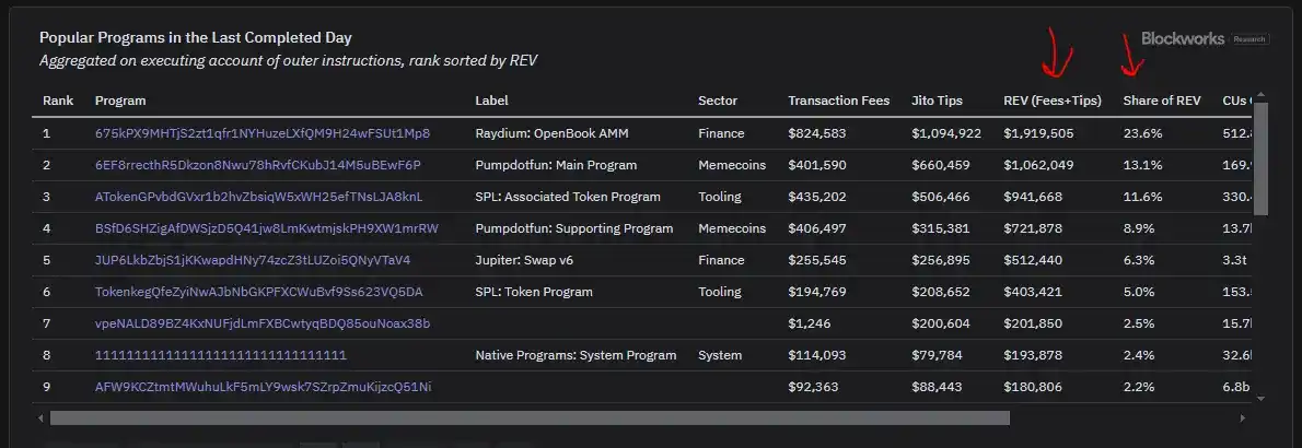 高度投机的资产往往会过度产生 REV,因为用户愿意支付更高的优先费用和 MEV 费率,以获得暴露于波动的机会。Meme 币交易的价值高度依赖于其在区块中的位置,因此控制排序的区块提议者可以获取更多价值。这为协议带来了比其他形式的链上活动更高的提成。