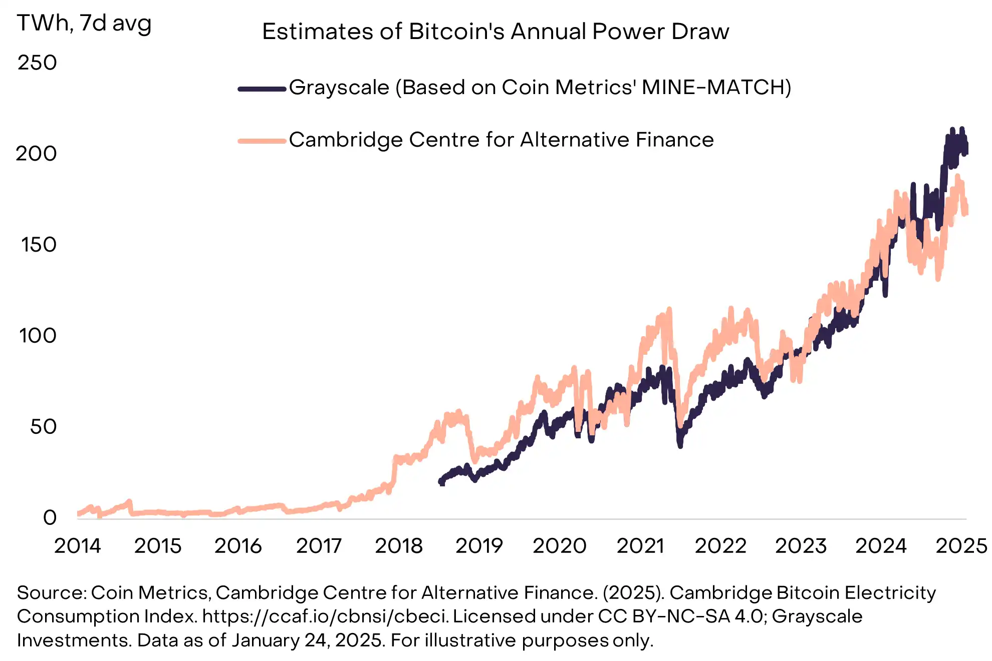 未来几年,技术应用的增长将对电力产生巨大需求,来自数字资产、人工智能及其他行业皆是如此。Grayscale 认为,比特币有助于全球电力基础设施的健康运行,并且与许多其他行业相比,比特币在加速向可再生能源转型方面具有独特的优势。