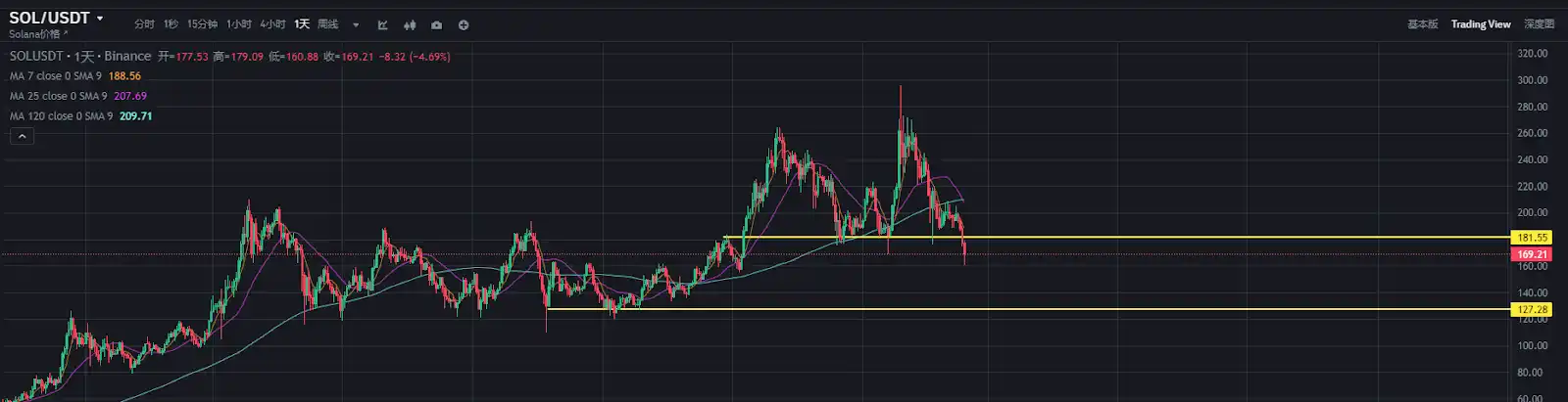 山寨币溃败:Solana(SOL)暴跌 20%,最低跌至 160 美元,当前报价 169 美元,已失去自 1 月 13 日以来的所有涨幅。狗狗币(DOGE)下跌至 0.24,XRP 则在 2.47 美元附近艰难守住支撑。