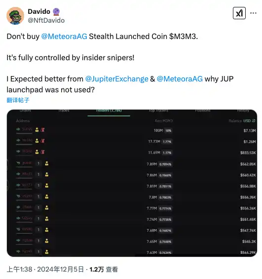 「不要购买 $M3M3!它完全被内部狙击手控制!」在利益集团被揭露之前,就有社区成员做出过提醒。