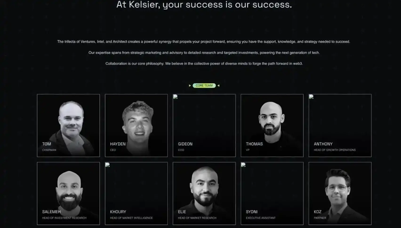 先看官方资料,Kelsier Ventures 的官方网站(Kelsier.io)对自己的介绍是,通过市场推广专业知识、深入研究和定向投资,推动 Web3 创新。他们声称在项目的各个阶段提供支持,从概念构思到市场推出,提供量身定制的全面支持。